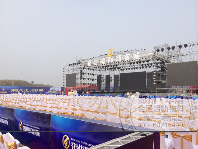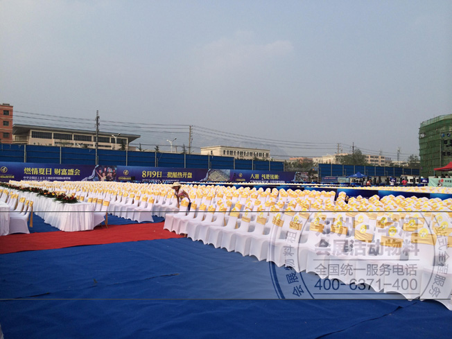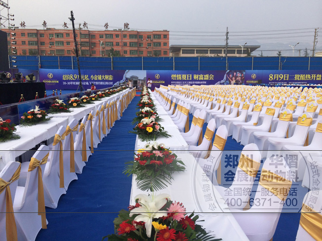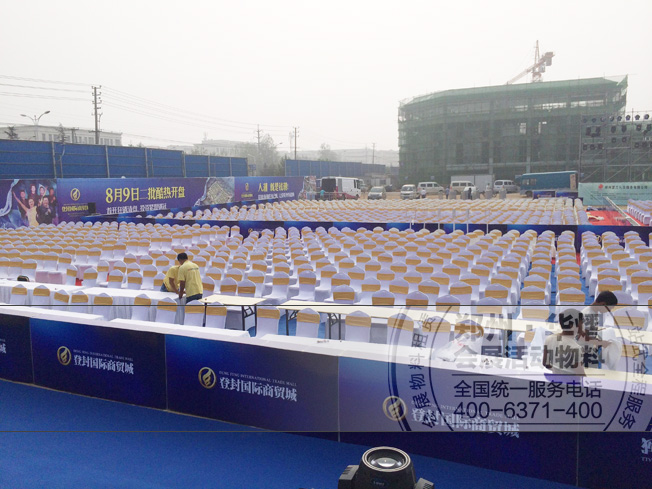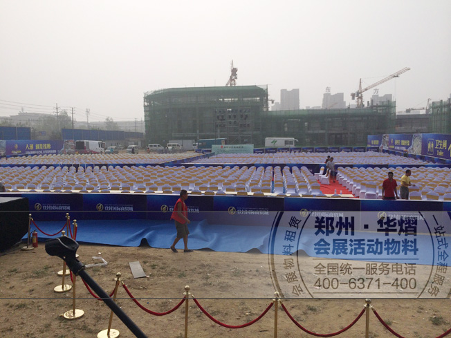 登封國(guó)際商貿(mào)城奠基儀式 華熠向您呈現(xiàn)大型活動(dòng)現(xiàn)場(chǎng)的專(zhuān)業(yè)性,不論是從前期的與客戶共同規(guī)劃場(chǎng)地到后期的現(xiàn)場(chǎng)執(zhí)行與布置,處處都能體現(xiàn)出華熠公司專(zhuān)業(yè)的一面。 開(kāi)展會(huì)、做活動(dòng),用物料就找華熠。百余種活動(dòng)物料,一站式全程服務(wù)。鄭州桌椅租賃專(zhuān)家!