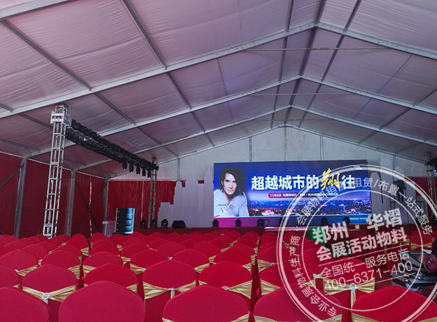 鄭州華熠一站式物料供應商——接待篷房、長條桌、貴賓椅,(配紅色桌布椅套),紅色地毯,鐵馬護欄......