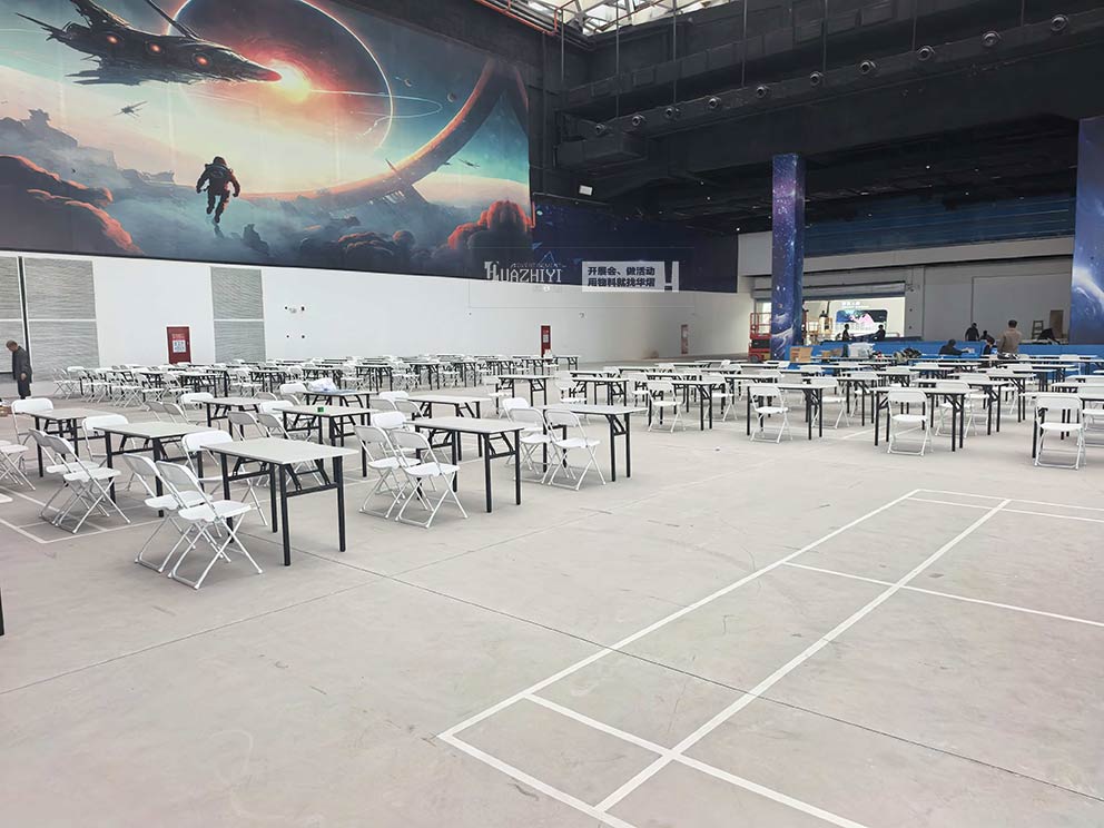 開封桌椅出租為第二屆河南省青少年科技運動會打造了一套精準適配的布場方案。這套方案既滿足了科技競技項目對場地功能的嚴苛要求,又兼顧了青少年活動的安全與舒適,讓參賽青少年能夠在規整有序的環境中專注投入科技競技。