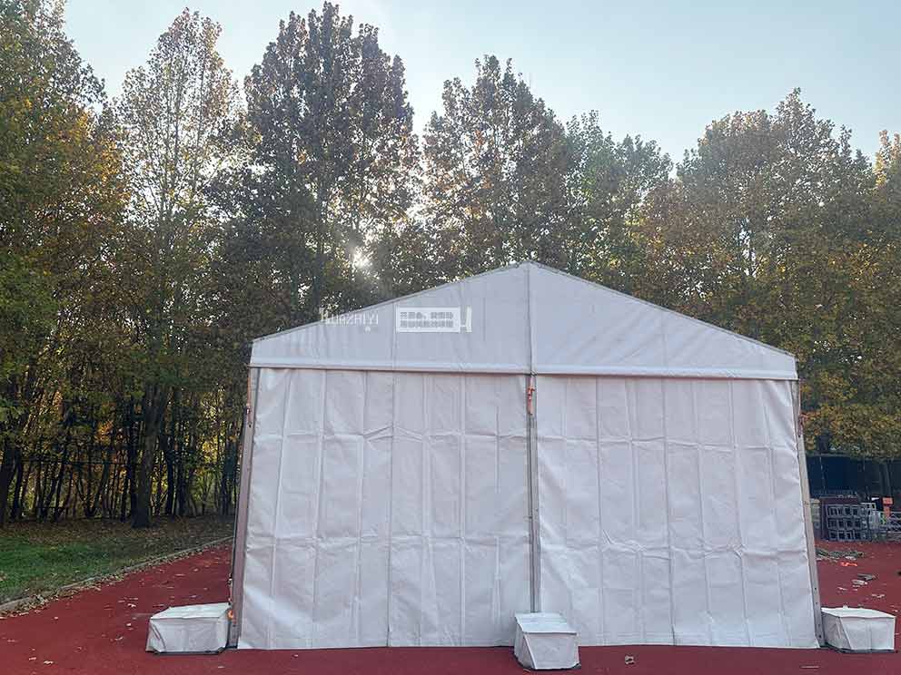 臨汾長治篷房出租為競賽搭建的白色人字形篷房,是場地的核心功能區。篷房選用高強度鋁合金框架與高密度PVC篷布,既具備優良的防風防雨性能,又能保證內部空間的開闊通透。無立柱設計讓篷房內利用率提升至90%以上。