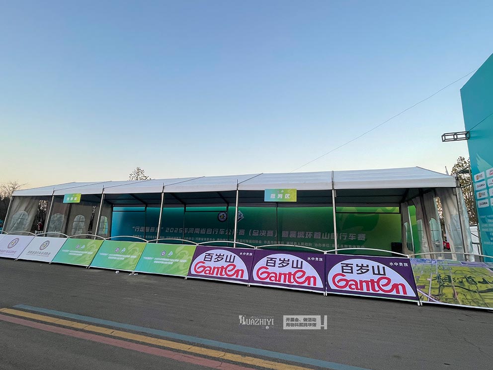 許昌篷房租賃深刻把握自行車賽事“高效運轉、安全保障”的核心需求,以尖頂篷房與人字形篷房為核心布場物料,在襄城賽事場地構建起覆蓋賽事全流程的服務空間,為選手與觀眾打造專業有序的賽事體驗。