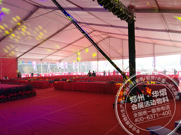 鄭州華熠一站式物料供應商——接待篷房、長條桌、貴賓椅,(配紅色桌布椅套),紅色地毯,鐵馬護欄......