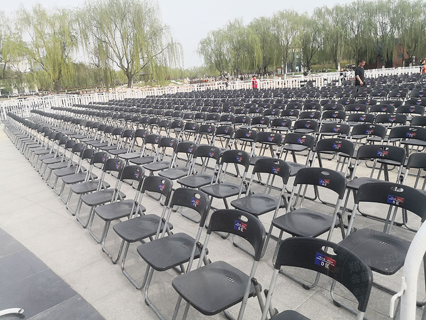 鄭州桌椅租賃公司擁有著十多年現(xiàn)場活動布置經(jīng)驗(yàn),在舒適的天氣時(shí),鄭州桌椅租賃公司的人員不畏辛苦,不懼困難,僅用了幾小時(shí)的時(shí)間就能把現(xiàn)場布置完畢,如圖一排排黑色整齊的折疊椅擺放在商場活動的正中央一眼望去,給人一種酷酷而又高級的感覺,使枯燥的天氣變得更加活躍。