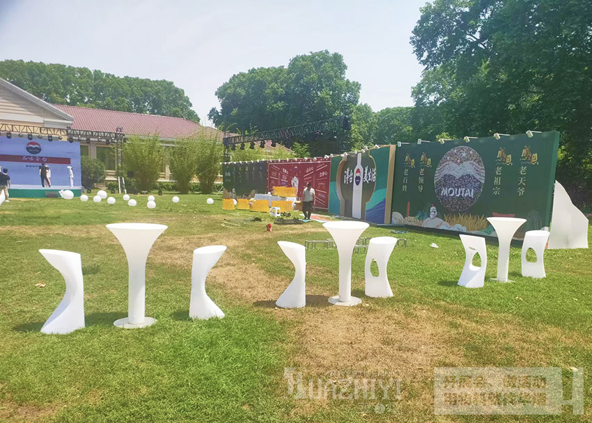 吧桌吧椅是最近的新型桌椅,使用場合廣泛,比如各種酒會、晚宴、生日派對,像我們這次使用的場地就是草坪,還適用于夜景,營造出一種意境美。