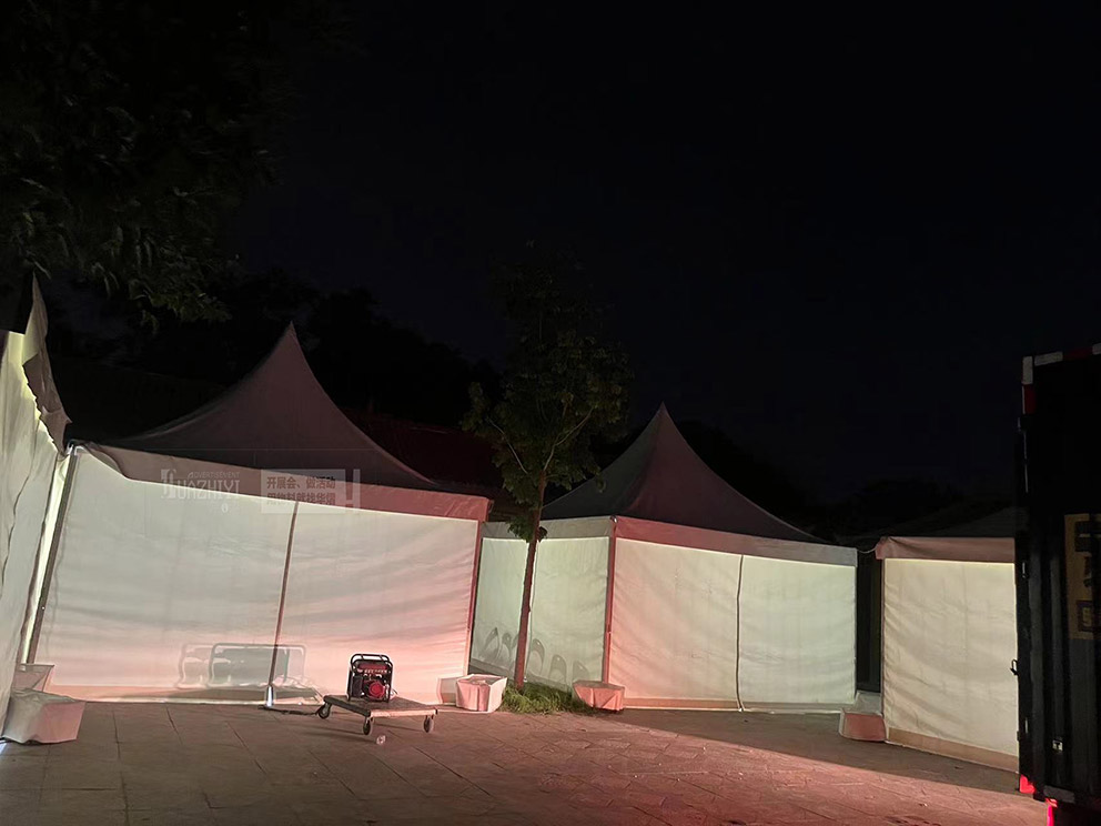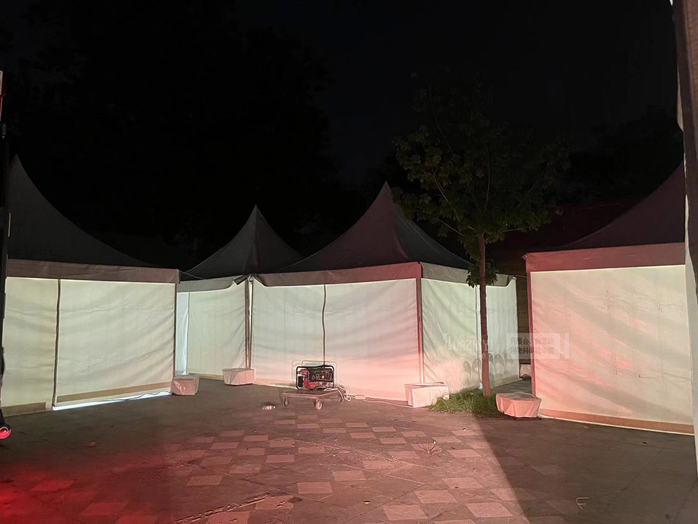 開封篷房租賃搭建的篷房在夜色中熠熠生輝。夜幕低垂,華燈初上,在這里有一座座精心搭建的篷房在夜色中悄然綻放,宛如璀璨星辰落入凡間,熠熠生輝,為這座歷史悠久的城市平添了幾分現代與夢幻交織的魅力。