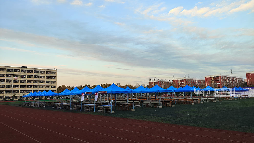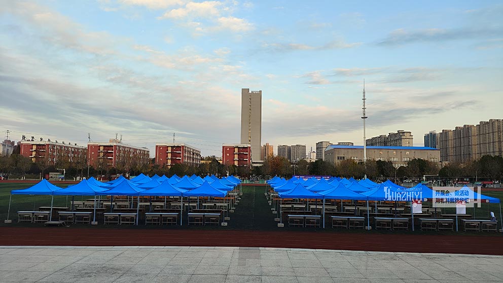 鄭州篷房出租搭建的簡易帳篷都可以用作哪些場合?鄭州華熠公司有篷房,篷房是更為大型的臨時建筑。而平常的一些小體量活動使用簡易帳篷則更加方便,華熠的簡易帳篷就可以用在馬拉松賽事上,義診活動,招聘活動上等,在不同內容活動上發揮不同的用途。
