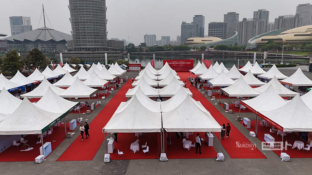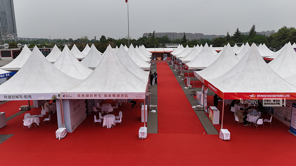 在活動的舉辦場地內,鄭州篷房租賃公司根據活動需求,精心設計了多款篷房方案,包括人字形篷房、尖頂篷房等,既滿足了展銷會的實用性需求,又增添了活動的觀賞性。