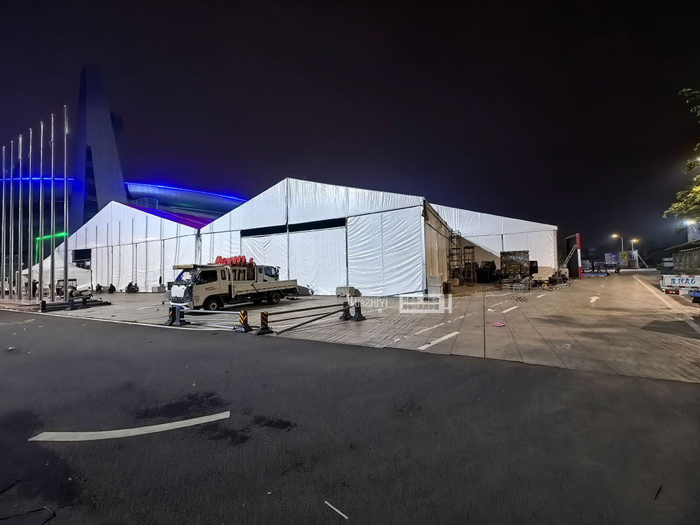 南陽體育中心項目需在短時間內完成大面積篷房搭建,對結構穩定性、空間利用率及施工效率提出嚴苛要求。鄭州華熠團隊根據場地特性,采用模塊化鋁合金框架與雙面PVC涂層纖維篷布組合方案,實現跨度40米、邊高5米的無柱空間設計。