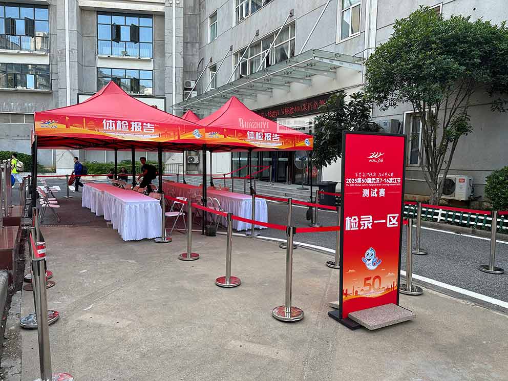 鄭州帳篷出租助力布置武漢716渡江節(jié)測(cè)試賽預(yù)檢報(bào)名處帳篷