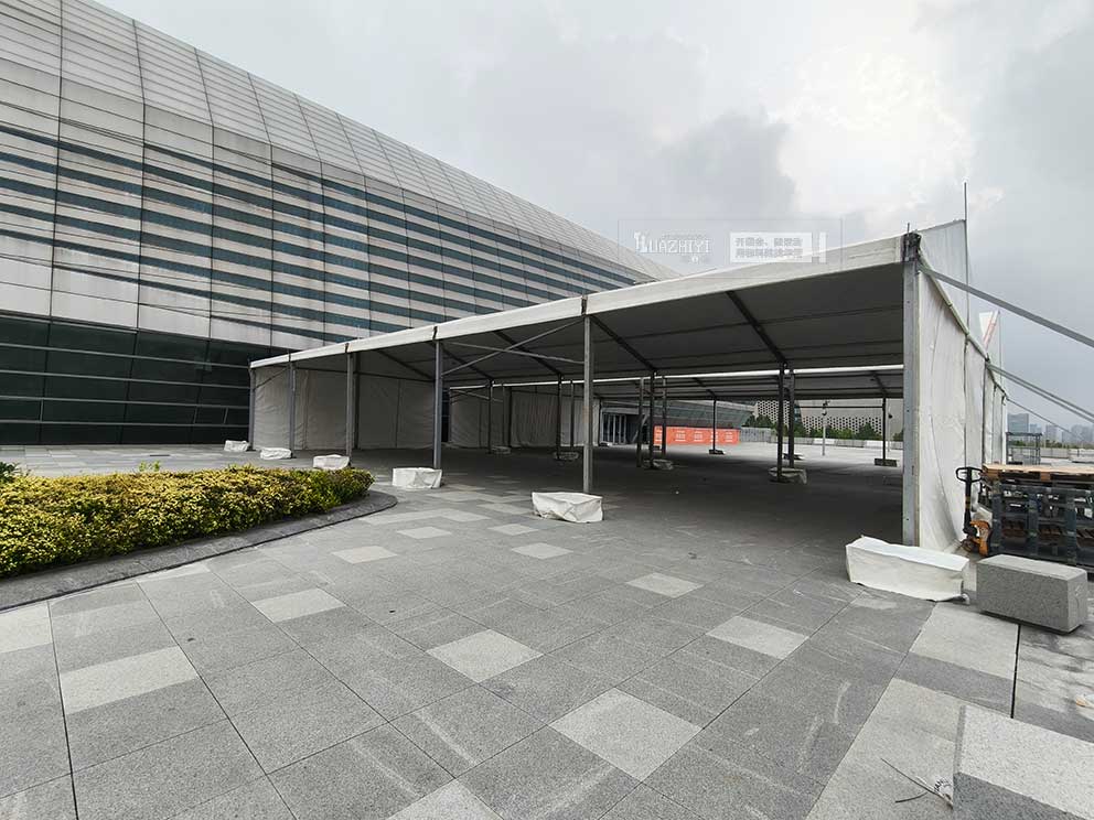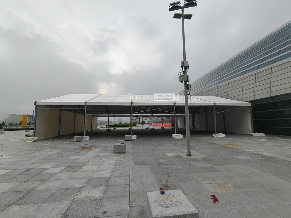 白色人字形頂篷在功能性與美觀度間找到了平衡。鶴壁篷房租賃選用的高密度PVC篷布,潔白的色澤在陽光下格外醒目,既能反射多余光線避免篷內(nèi)悶熱,又能讓觀眾在遠處就能清晰識別安檢區(qū)域。人字形的頂篷坡度經(jīng)過精確計算,45 度的傾斜角既符合力學(xué)原理,能有效分散風(fēng)力,又便于雨水快速滑落,應(yīng)對突發(fā)天氣。開闊的空間讓安檢設(shè)備的擺放和人員流動都綽綽有余,不會給人壓抑感。