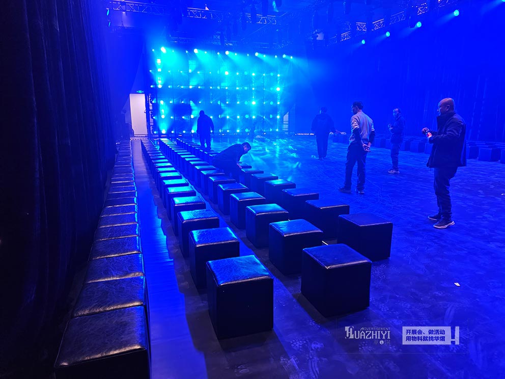 此次選用的黑色皮質沙發方凳不僅顏值在線,實用性能同樣出色。皮質面料具備易清潔、耐磨的優勢,活動期間若沾染灰塵或輕微污漬,只需用濕抹布輕輕擦拭即可恢復潔凈,能輕松應對人流密集的使用場景;沙發坐感柔軟且支撐性強,方凳輕便穩固,可滿足嘉賓長時間就座的舒適度需求,同時方便靈活挪動,能根據活動流程的調整快速優化場地布局。