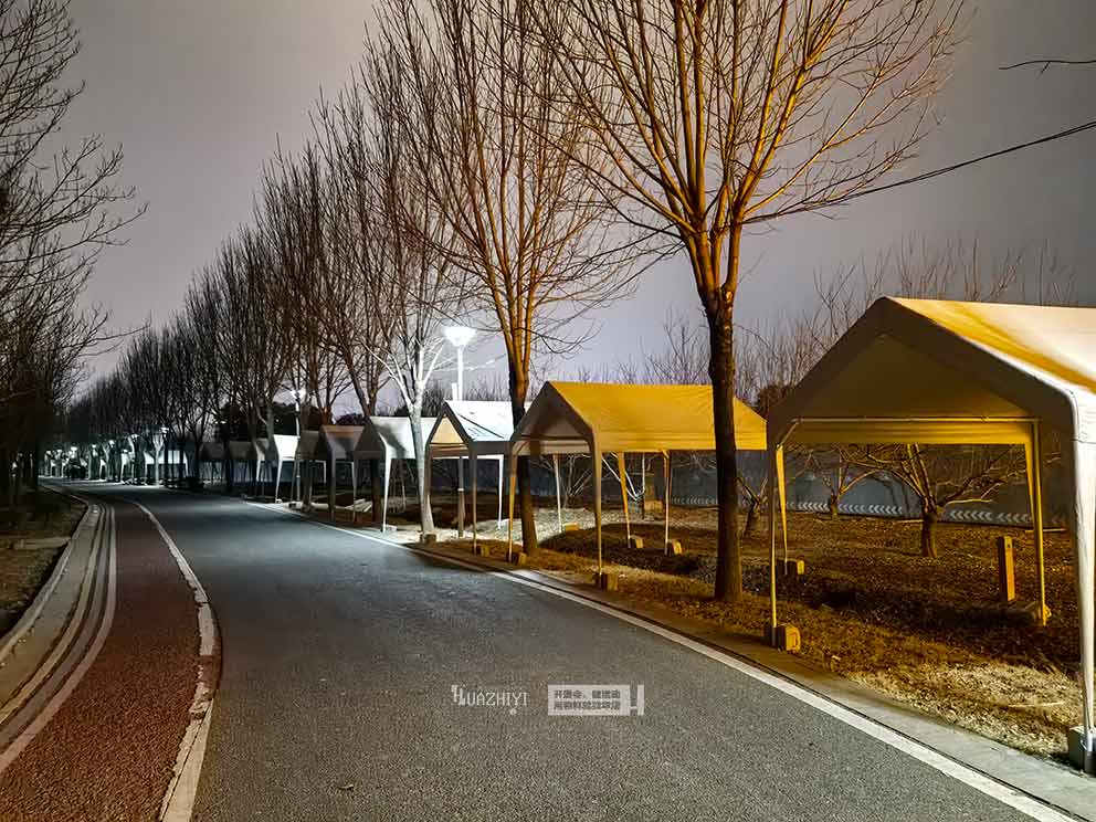 米白色網紅帳篷是本次廟會的視覺亮點。純凈柔和的色調,與永寧湖的湖光夜色、千燈美景相得益彰,簡約大氣又極具氛圍感,隨手一拍就是朋友圈爆款。帳篷采用優質篷布與穩固框架,安全耐用、防風防曬,既能滿足商戶經營、游客休憩需求,又成為廟會里辨識度極高的打卡地標。 從場地勘測、方案設計到現場搭建、細節調整,周口篷房租賃團隊全程高效執行。